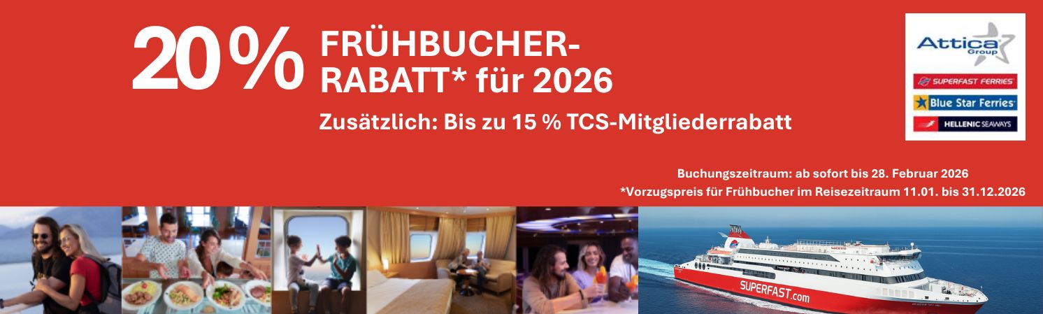 Jetzt 20% Ermäßigung auf ausgewählte Abfahrten nach Italien, Spanien und Griechenland sichern.